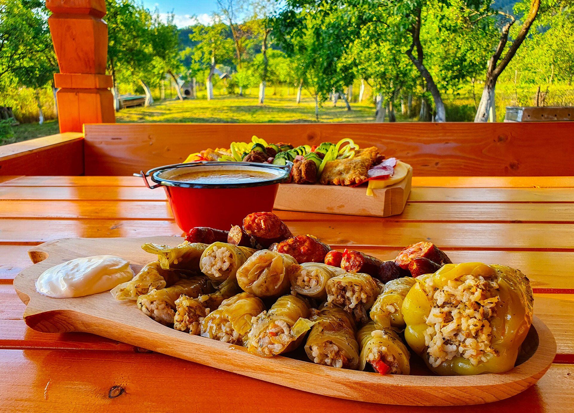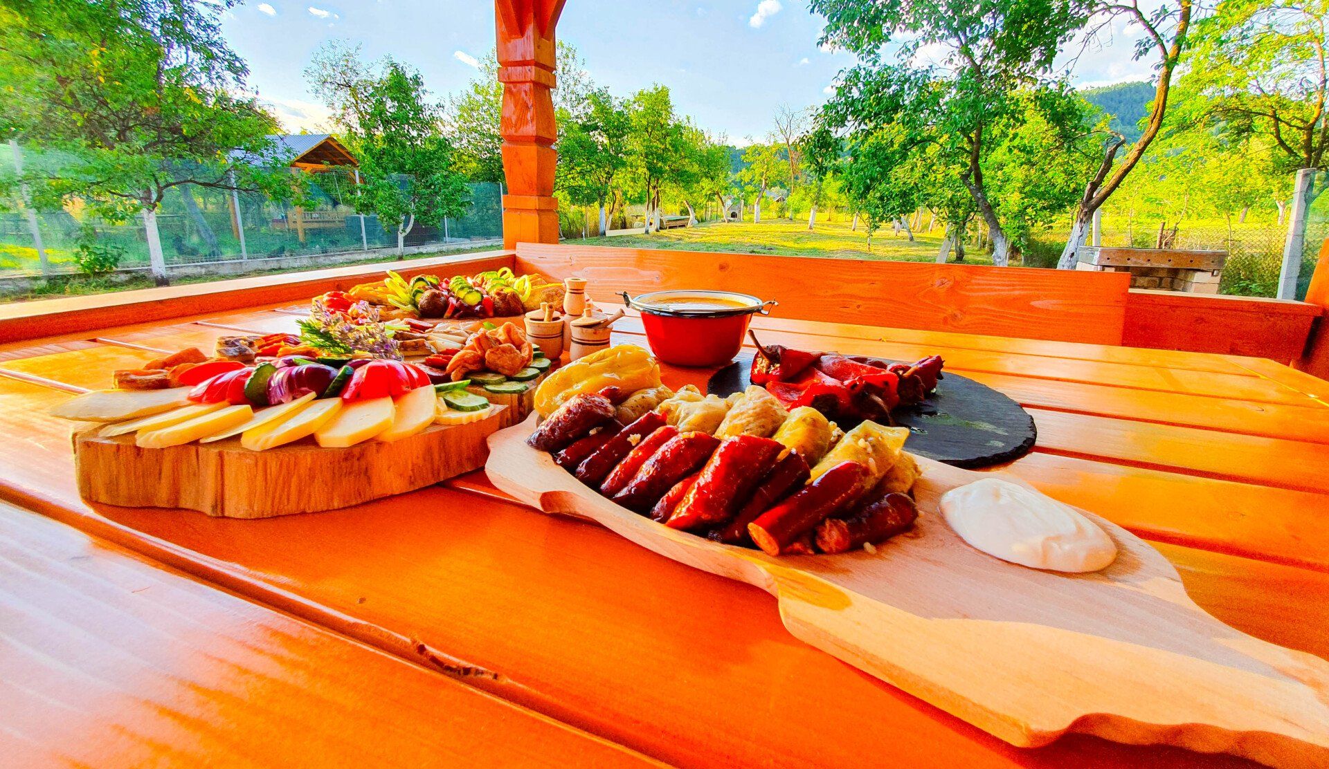 - Platouri tradiționale compuse din: slănină, cârnați de casă, jumeri, caltaboș, brânză, ceapă etc.